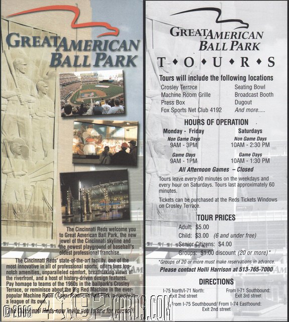 2003 Cincinnati Reds Reds Great American Ball Park Tours Brochure