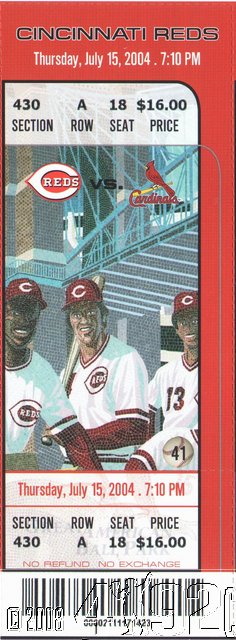 2004 Cincinnati Reds Team Ticket Game 41 Jul 15