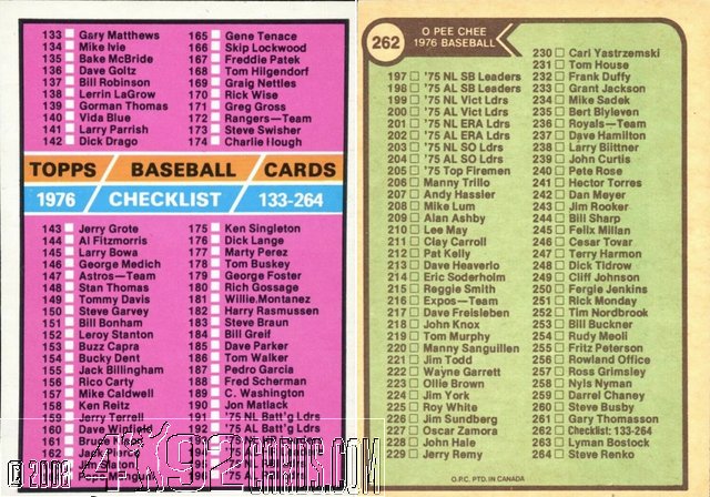 1976 O-Pee-Chee Checklist 262