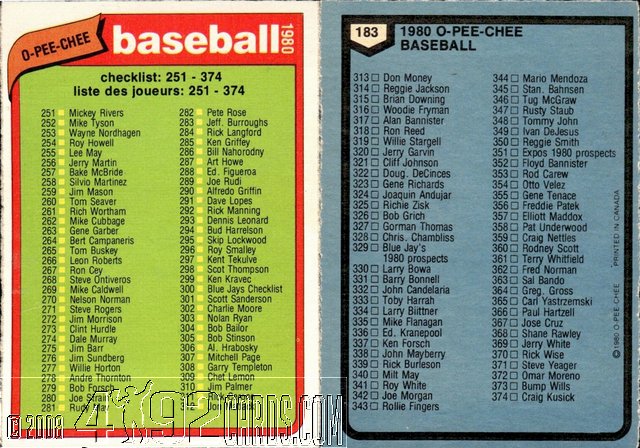 1980 O-Pee-Chee Checklist 183