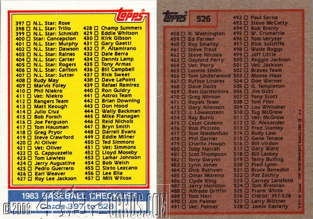 1983 Topps Checklist 526