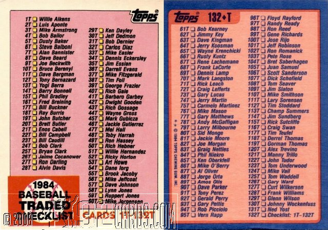 1984 Topps Traded Checklist Tiffany 132T